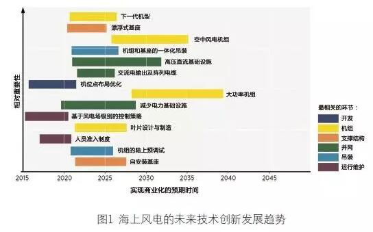 (4)輸電環(huán)節(jié)的創(chuàng)新。輸電環(huán)節(jié)也存在諸多可以創(chuàng)新的方面,其中就包括減少海上高壓交流(HVAC)基礎(chǔ)設(shè)施。在輸送離岸較遠的風電場所發(fā)電力時,高壓直流(HVDC)方式要優(yōu)于高壓交流(HVAC)方式,因為前者可以減少線損以及電纜成本。高壓直流輸電基礎(chǔ)設(shè)施成本的下降,將可以為其打開新的應用市場,并使高壓直流變電站的互聯(lián)成為建設(shè)國際或者洲際高壓交流超級電網(wǎng)的第一要素(First Elements)。