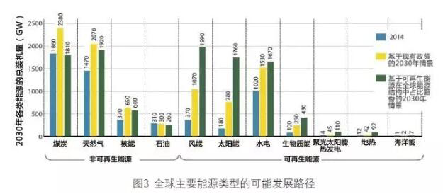 這份報告的核心結(jié)論之一就是,如果全球經(jīng)濟一直朝著無碳化的方向發(fā)展,到2030 年,風電必將成為主力電源。國際可再生能源署認為,海上風電的總裝機在2030 年將達到100GW,但如果能夠從政策層面使可再生能源在全球能源結(jié)構(gòu)中的占比翻番,那么到2030 年海上風電的裝機規(guī)模有望進一步擴大——風電總裝機將達到1990GW,其中海上風電占280GW。